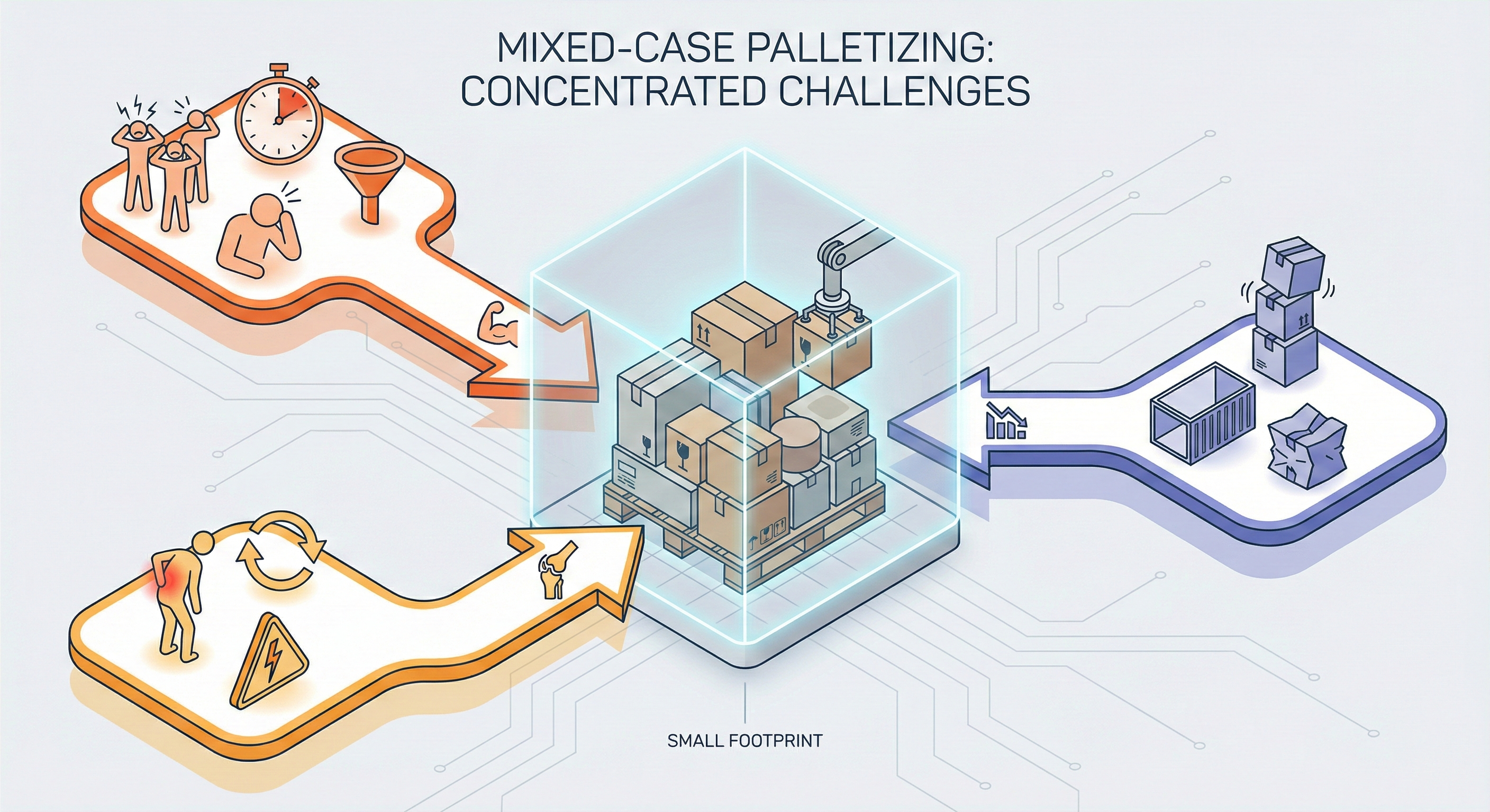 Mixed-case palletizing is not a rounding error in warehouse automation. It is a foundational workflow that determines labour intensity, safety exposure, outbound stability, and freight efficiency—and it is common enough that nearly every operator and integrator will recognize it once it is clearly scoped.